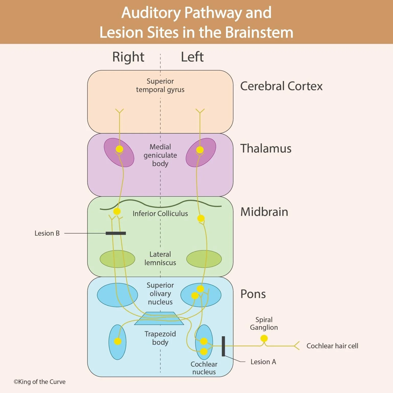 The auditory system is a sophisticated neural network that allows us to perceive and interpret sound. This blog post explores the anatomy of the auditory pathway and the impact of lesions at specific sites in the brainstem on hearing.