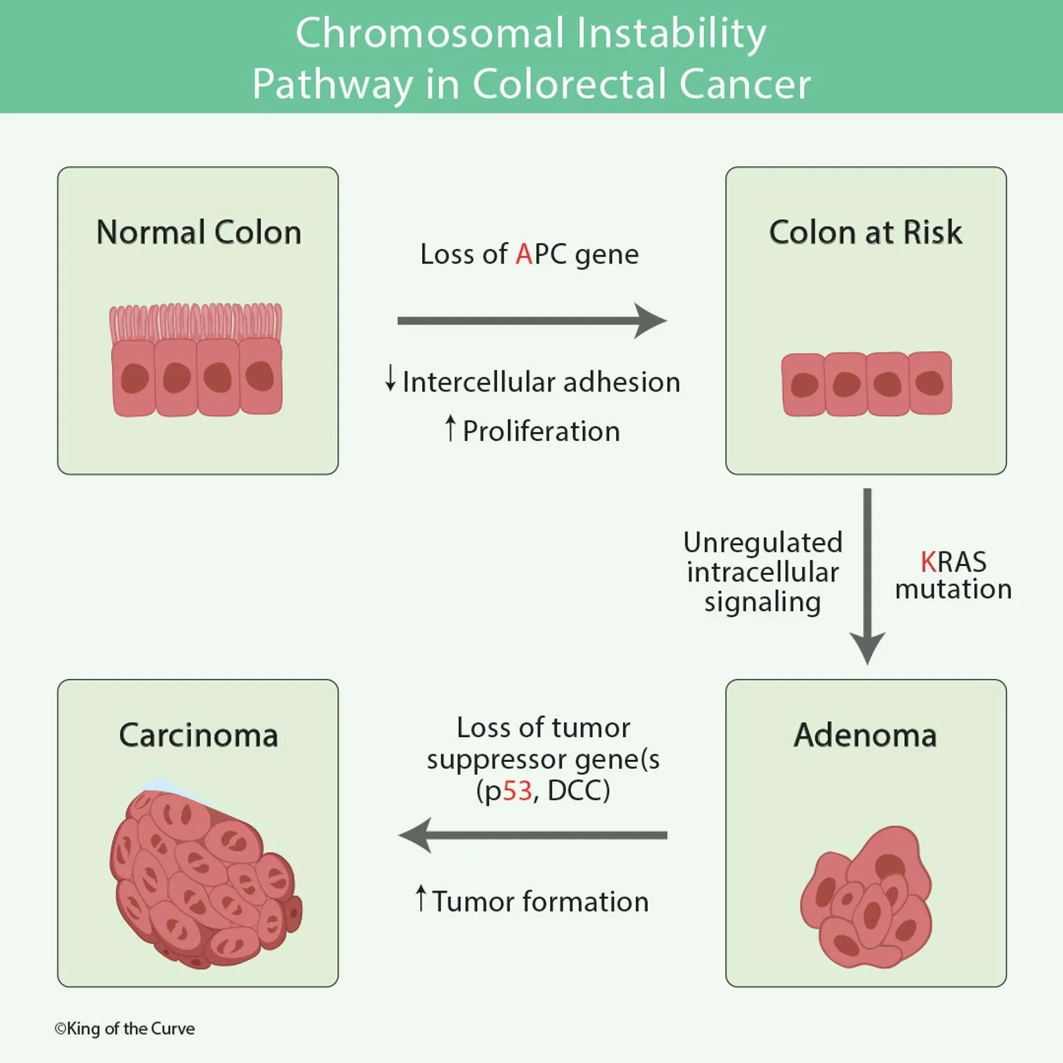 Colorectal cancer (CRC) is one of the most common malignancies worldwide and develops through a series of well-defined genetic mutations. One of the key mechanisms involved in its progression is the Chromosomal Instability (CIN) pathway. This pathway involves stepwise genetic alterations that disrupt normal cellular regulation, ultimately leading to uncontrolled cell growth and cancer formation.