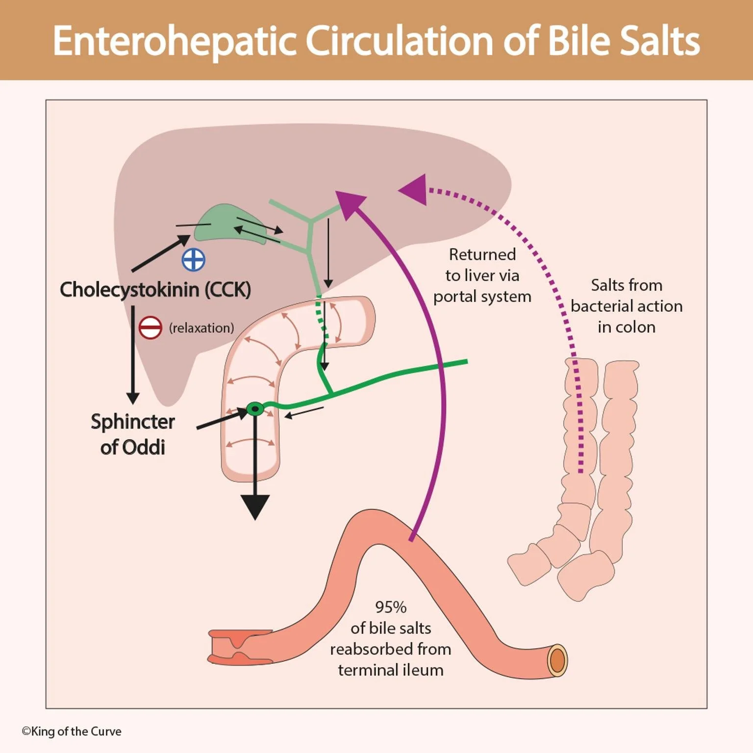 Cholesterol Balance: Since bile salts are derived from cholesterol, enterohepatic circulation helps regulate cholesterol levels in the body.