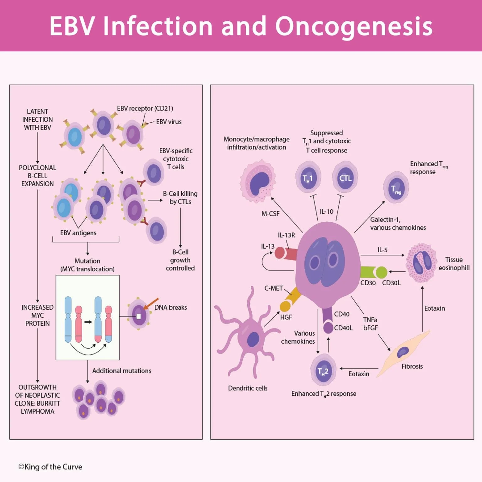 The Epstein-Barr Virus (EBV), a member of the herpesvirus family, is one of the most common human viruses. While EBV is best known for causing infectious mononucleosis, it also plays a key role in the development of several cancers. Understanding how EBV infection progresses to oncogenesis is crucial in virology, oncology, and immunology.