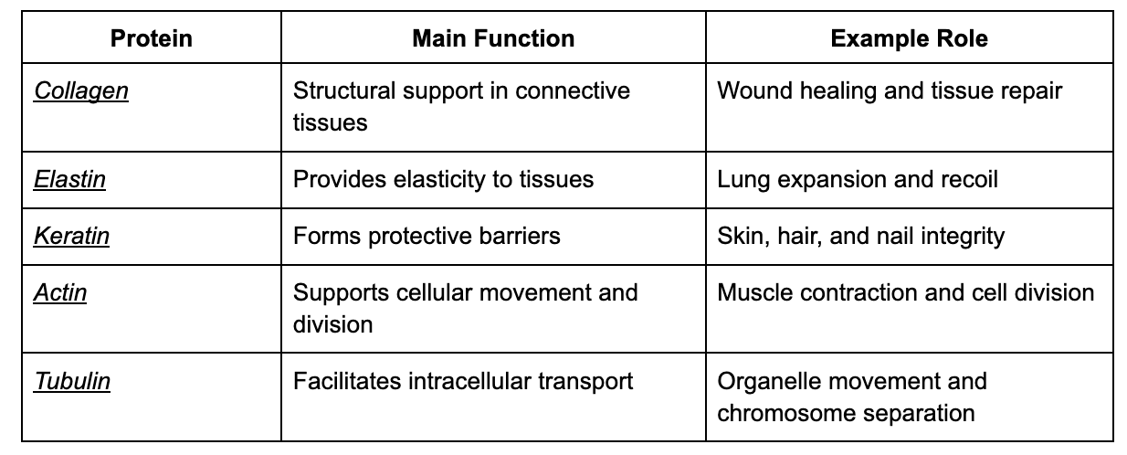 Proteins are the molecular machines that keep our bodies functioning. They perform a wide range of roles, from providing structural support to enabling cellular movement. In this article, we’ll explore five critical proteins—collagen, elastin, keratin, actin, and tubulin—and their unique functions in the body.